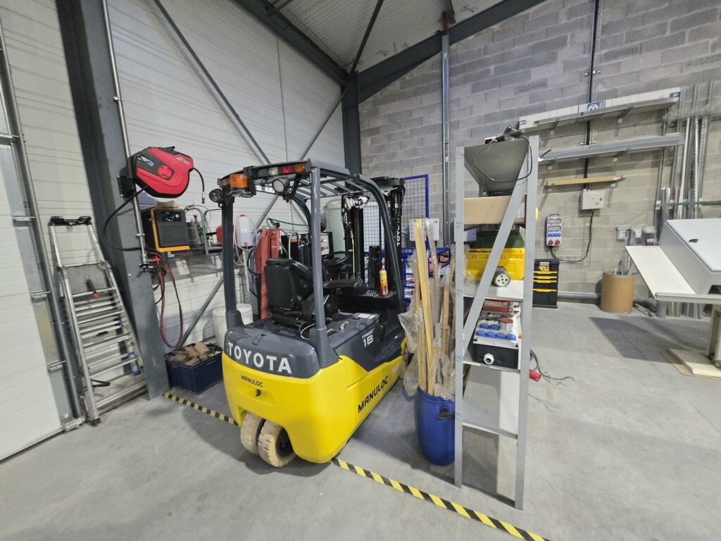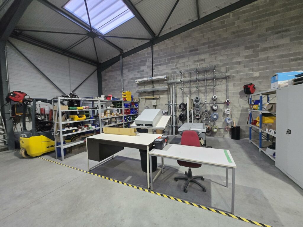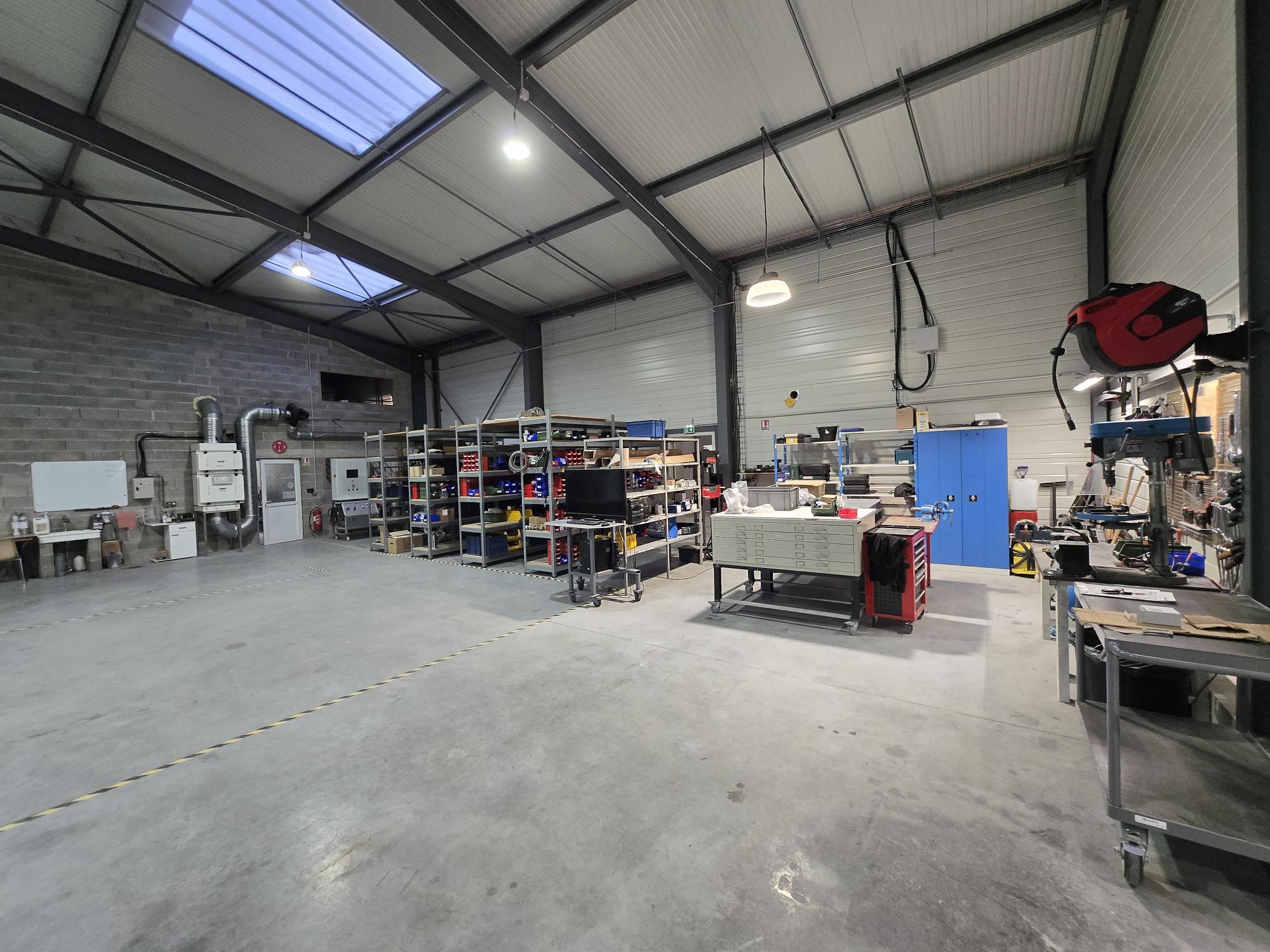 L’atelier est équipé d’outillages spécifiques pour la fabrication et l’assemblage de skids et machines spéciales (Postes à souder MIG & Laser, Découpeuse CNC Laser, presses, marbres, chariots élévateurs, etc), ainsi que de toutes les utilités nécessaires (électricité, eau déminéralisée, air comprimé).